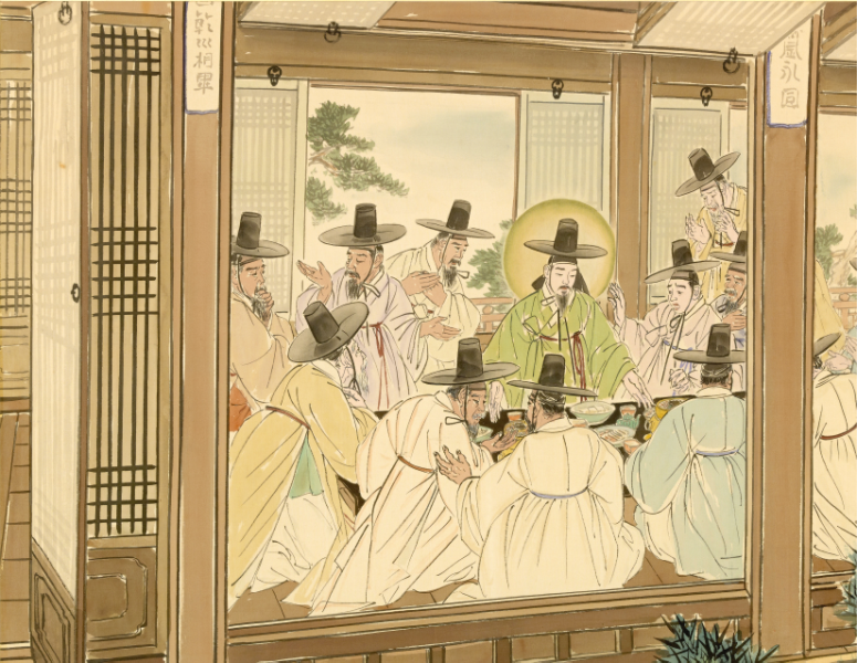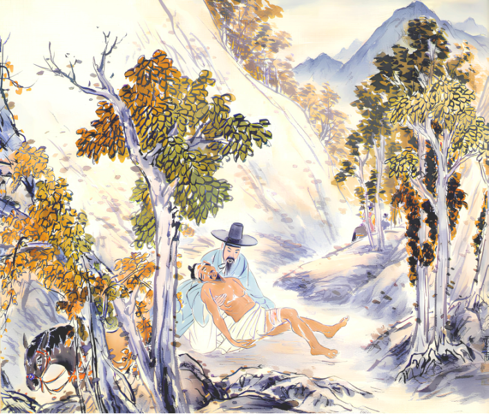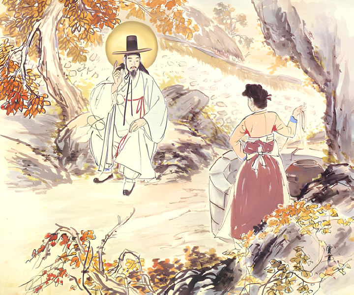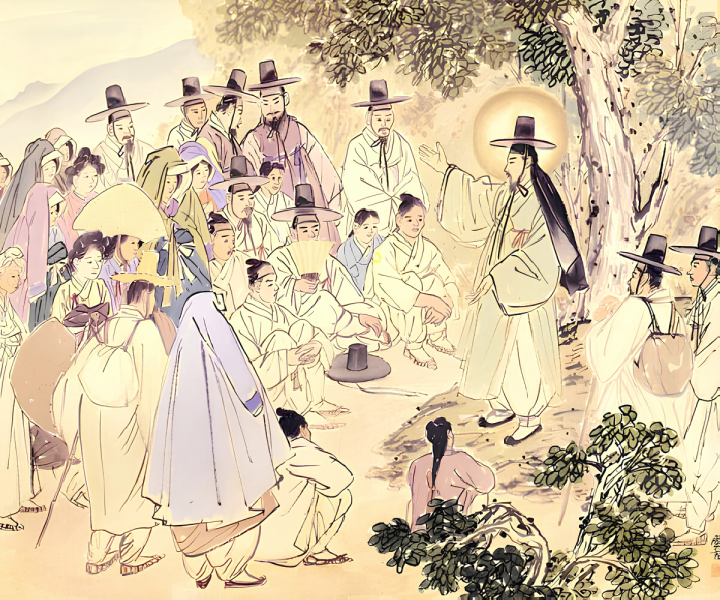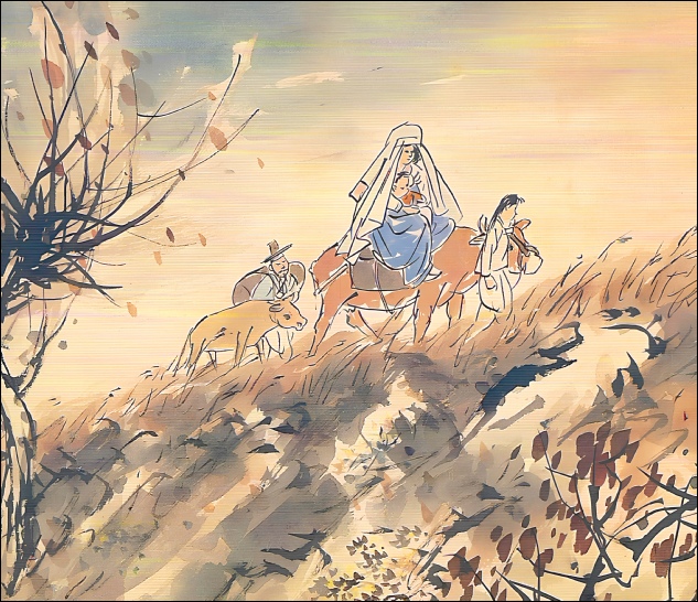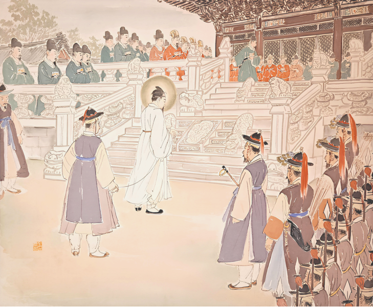 key moments in the life of Christ, personified by Koreans, in traditional Asian art